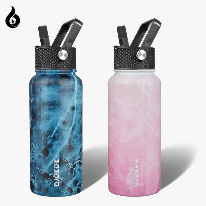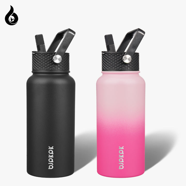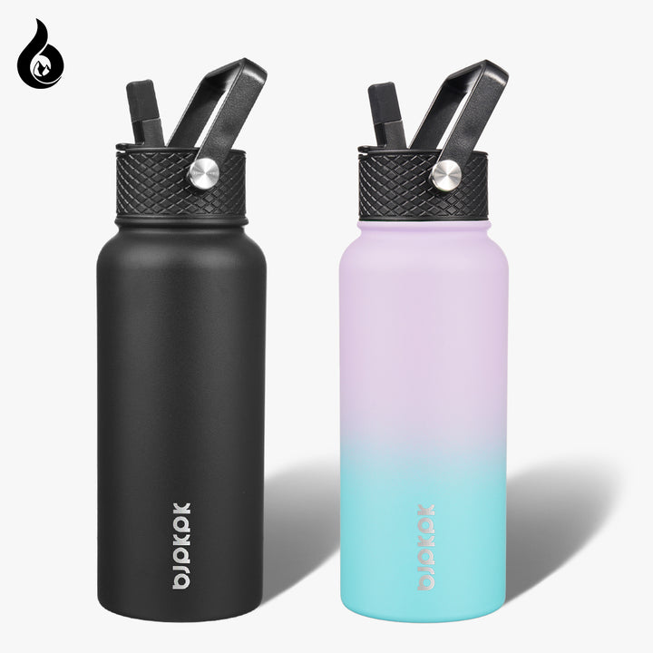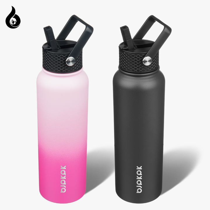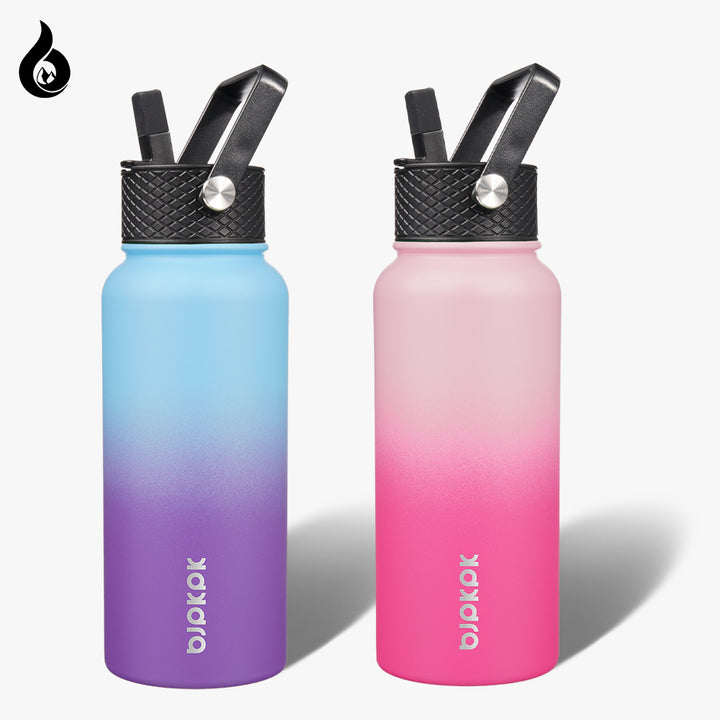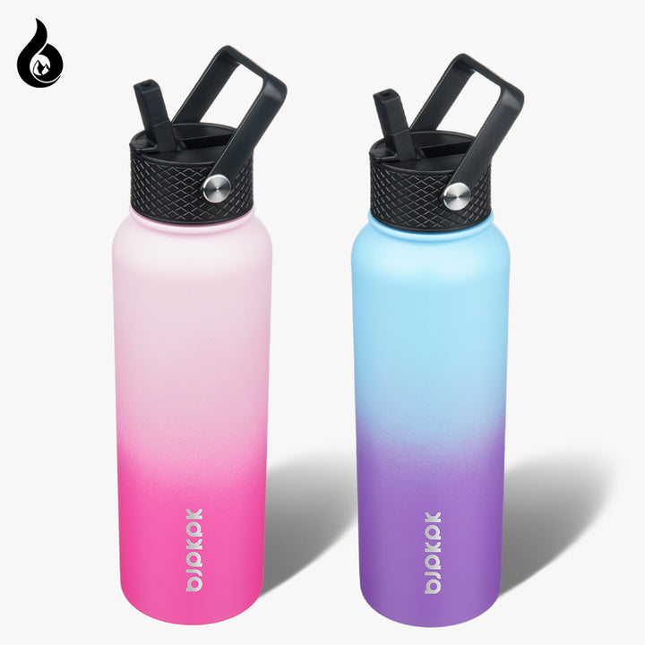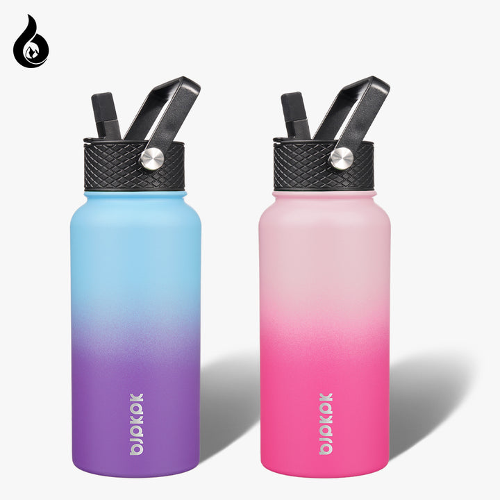 BJPKPK 2 Pack Insulated Water Bottles with Straw Lids