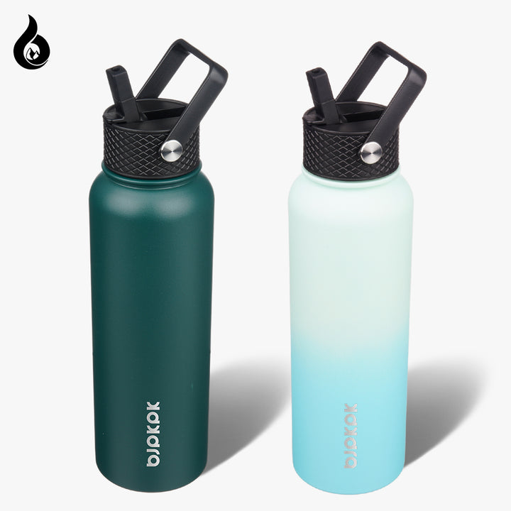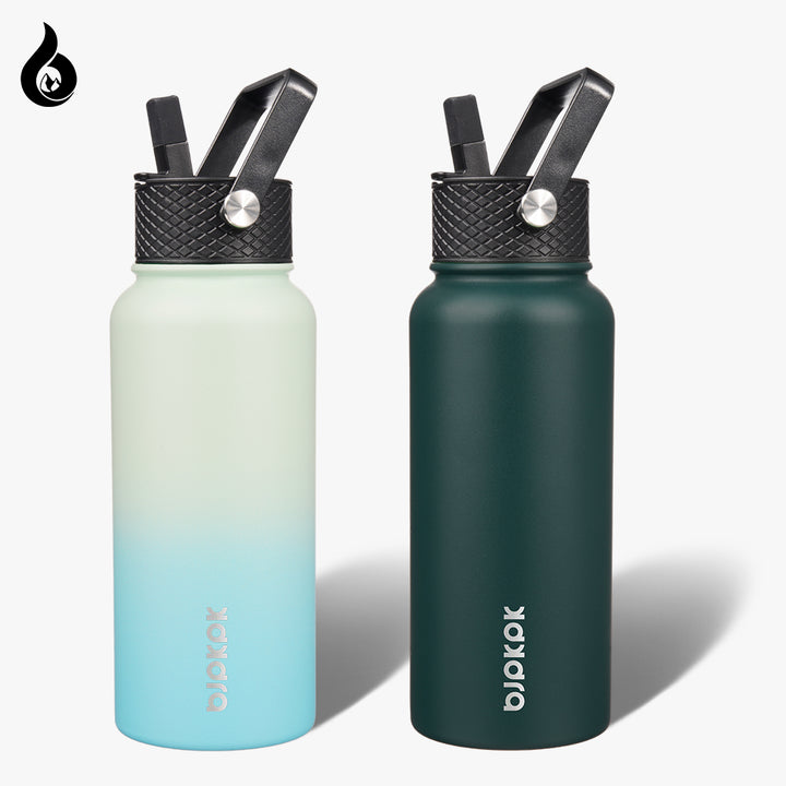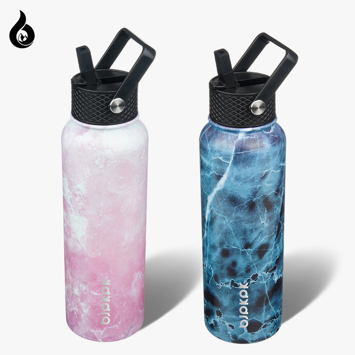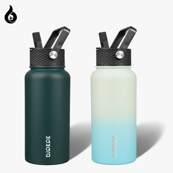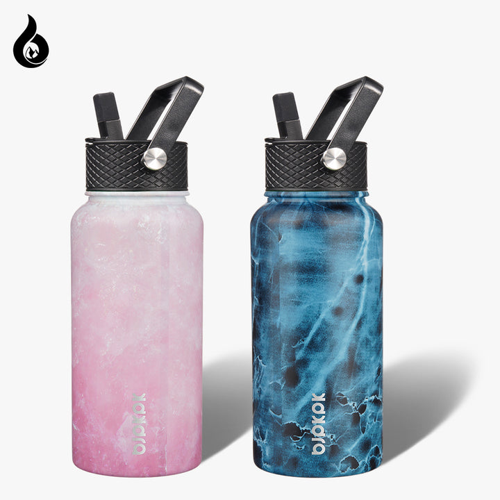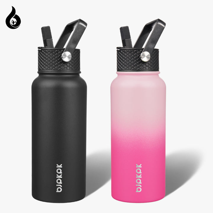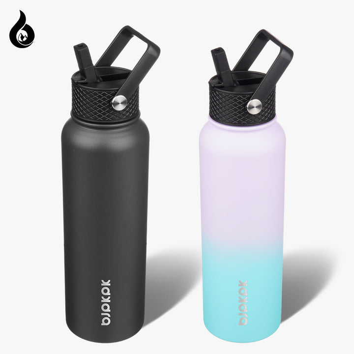 BJPKPK 2 Pack Insulated Water Bottles with Straw Lids