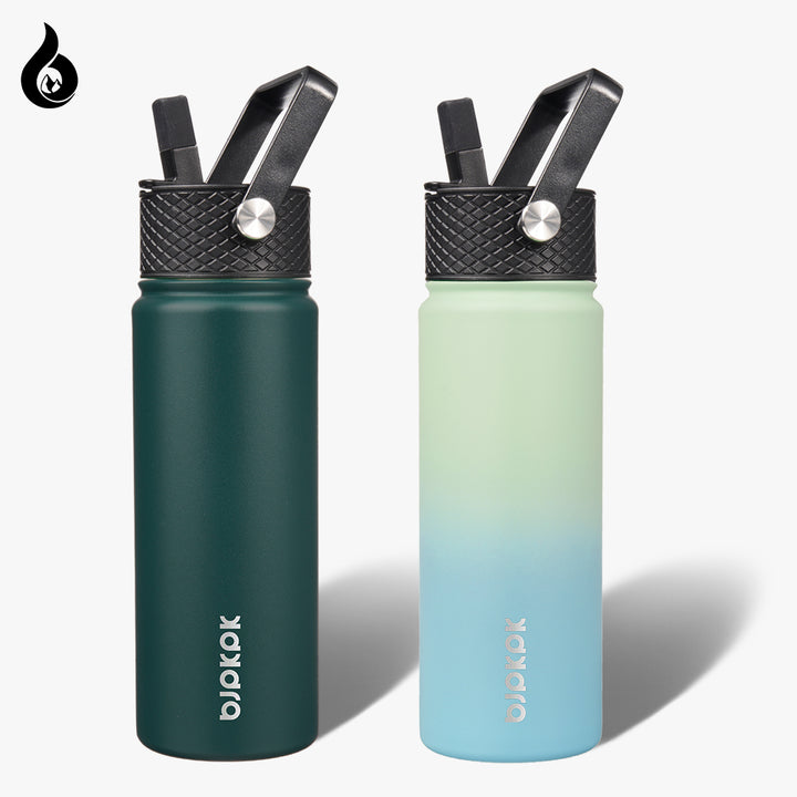 BJPKPK 2-pack metal water bottles include 2 insulated bottles, 6 BPA-free leak-proof lids (flex, spout, straw types), 4 straws and 2 brushes. With double-walled vacuum insulation (cold 24h/hot 12h), they’re made of 18/8 stainless steel—durable, rust-resistant, sweat-free, with a wide mouth for easy use. Available in multiple colors/sizes (18oz-40oz), reusable and ideal for daily use or gifting.